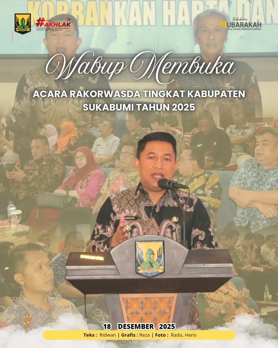Sukabumi | Matanusa.net – Wakil Bupati Sukabumi, H. Andreas, membuka secara resmi kegiatan Rapat Koordinasi Pengawasan Daerah (Rakorwasda) Tingkat Kabupaten Sukabumi dalam rangka Peringatan Hari Anti Korupsi Sedunia (HAKORDIA) Tahun 2025. Kegiatan tersebut mengusung tema “Penguatan Sistem Pengendalian Internal Perangkat Daerah Melalui Manajemen Risiko dan Membangun Budaya Anti Korupsi” dan dilaksanakan di Aula Sekretariat Daerah Kabupaten Sukabumi, Palabuhanratu, pada Kamis (18/12/2025).