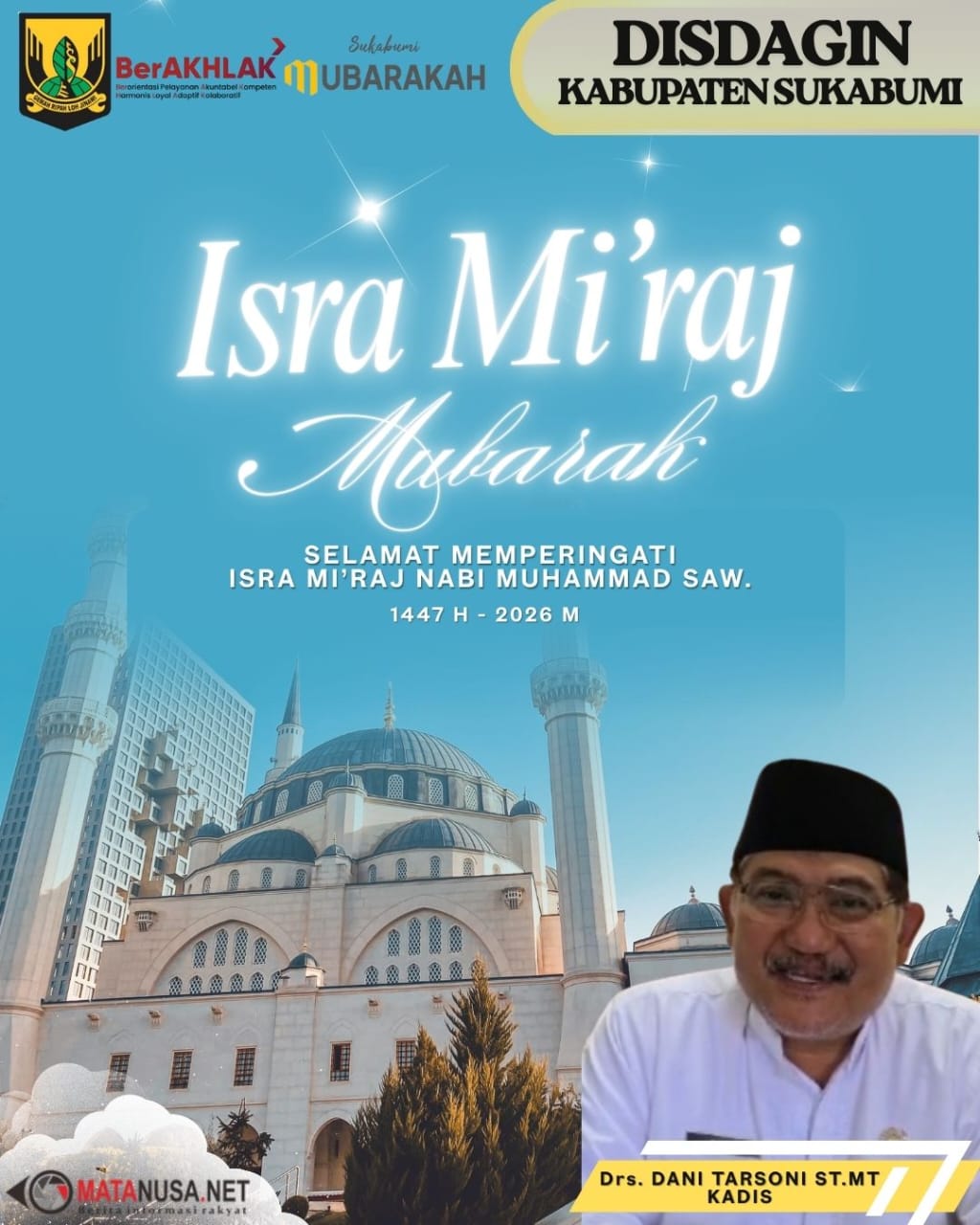 Sukabumi | MatanusMatanusa.neta.net — Peringatan Isra Mi’raj Nabi Muhammad SAW yang jatuh pada Jumat, 16 Januari 2026 dimaknai Kepala Dinas Perdagangan dan Perindustrian (Disdagin) Kabupaten Sukabumi, Dani Tarsoni, S.T., M.T., sebagai momentum refleksi spiritual untuk memperkuat integritas, kejujuran, dan tanggung jawab dalam pengelolaan sektor perdagangan dan perindustrian.