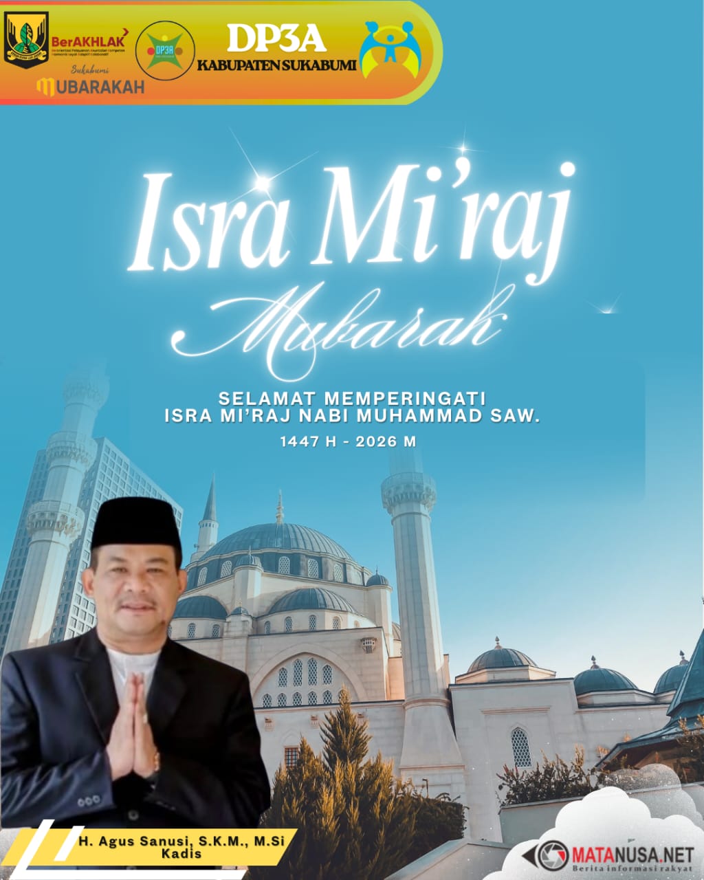Sukabumi | Matanusa.net — Peringatan Isra Mi’raj Nabi Muhammad SAW 1447 Hijriah/2026 M 16 Januari 2026 dimaknai sebagai momentum penting untuk memperkuat nilai kepedulian, tanggung jawab, dan perlindungan terhadap perempuan serta anak di Kabupaten Sukabumi.