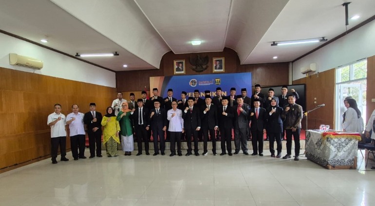 Camat Kabandungan Lilih Resmiati bersama 20 camat lainnya se-Kabupaten Sukabumi usai dilantik sebagai Pejabat Pembuat Akta Tanah Sementara (PPATS). (Foto: R. Iyan Satria).