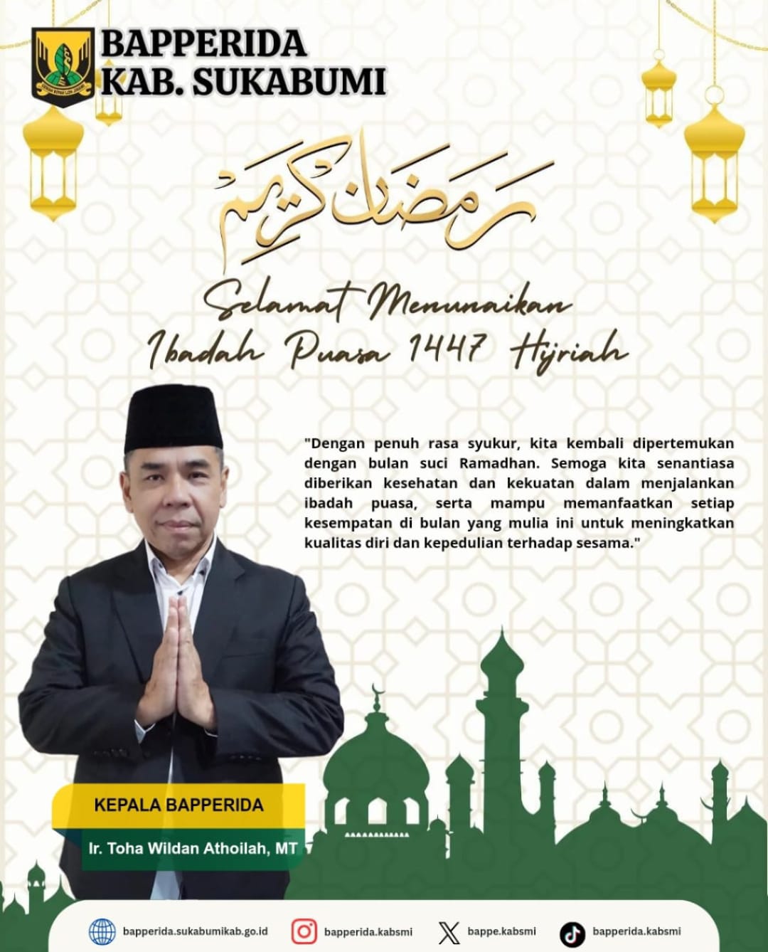 Sukabumi | Matanusa.net – Badan Perencanaan Pembangunan, Riset dan Inovasi Daerah (Bapperida) Kabupaten Sukabumi menyampaikan ucapan selamat menunaikan ibadah puasa Ramadan 1447 Hijriah kepada seluruh masyarakat Kabupaten Sukabumi.