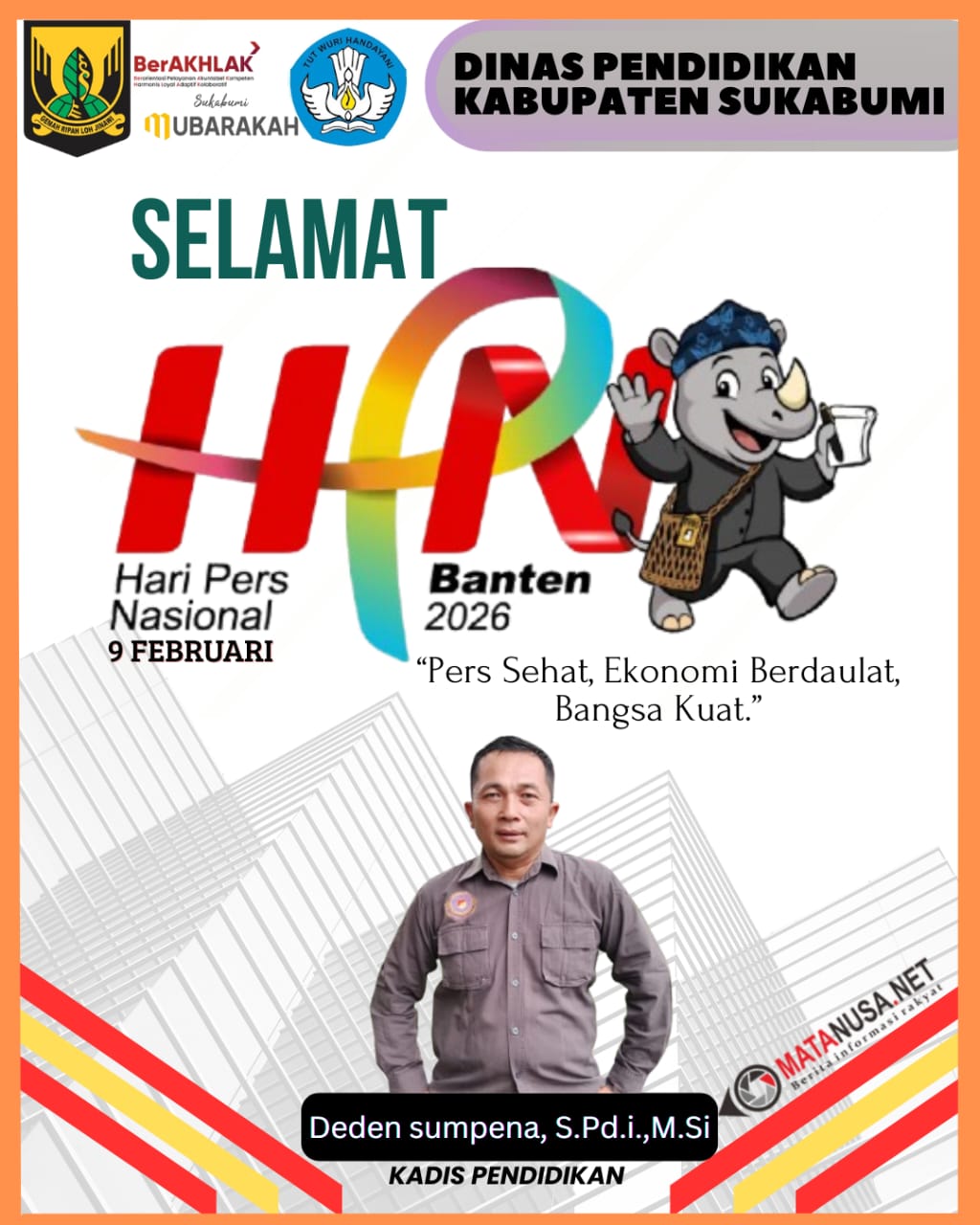 Sukabumi | Matanusa.net – Kepala Dinas Pendidikan Kabupaten Sukabumi, Deden Sumpena, S.Pd.I., S.IP., KP., M.Si, menyampaikan ucapan Selamat Hari Pers Nasional (HPN) Tahun 2026 yang diperingati pada 9 Februari 2026. Peringatan HPN tahun ini mengusung tema “Pers Sehat, Ekonomi Berdaulat, Bangsa Kuat” dan dilaksanakan secara nasional di Provinsi Banten.