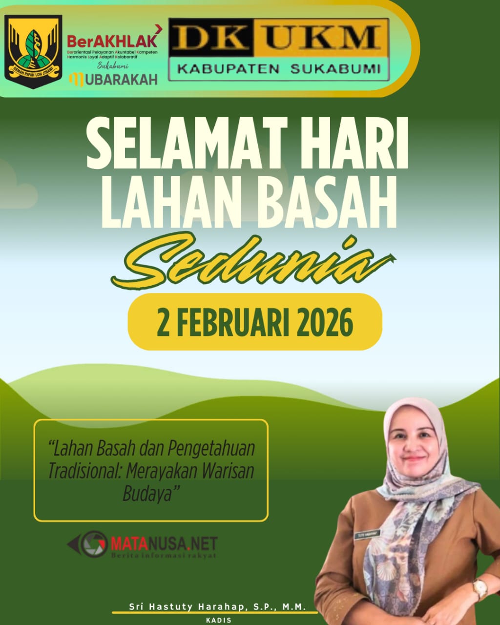 Melalui peringatan Hari Lahan Basah Sedunia 2026 ini, DKUKM Kabupaten Sukabumi mengajak seluruh pelaku usaha, koperasi, dan masyarakat untuk bersama-sama menjaga kelestarian lahan basah, sebagai bagian dari upaya membangun ekonomi daerah yang inklusif, berkelanjutan, dan berbasis potensi lokal.