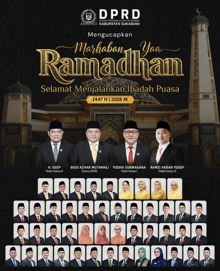 Sukabumi | Matanusa.net – Dewan Perwakilan Rakyat Daerah (DPRD) Kabupaten Sukabumi menyampaikan ucapan “Marhaban Yaa Ramadhan” kepada seluruh masyarakat Kabupaten Sukabumi dalam rangka menyambut bulan suci Ramadan 1447 Hijriyah/2026 Masehi.