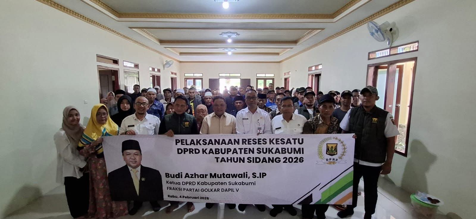 Sukabumi | Matanusa.net – Ketua DPRD Kabupaten Sukabumi, Budi Azhar Mutawali, S.Ip, melaksanakan Reses Kesatu DPRD Kabupaten Sukabumi Tahun Sidang 2026, pada Rabu (4/2/2026). Kegiatan ini menjadi wadah penyerapan aspirasi masyarakat di daerah pemilihannya dan dihadiri unsur pemerintah desa, tokoh masyarakat, serta warga setempat.