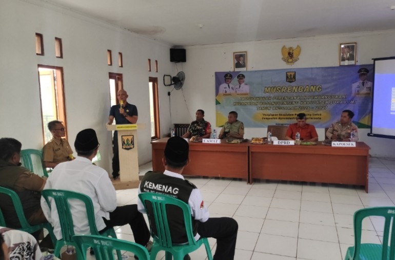 Camat Bojonggenteng Drs. Jenal Abidin, M.AP dalam sambutannya menyampaikan bahwa Musrenbang kecamatan merupakan tahapan krusial dalam sistem perencanaan pembangunan daerah. Ia menegaskan bahwa seluruh usulan yang disampaikan harus disusun secara matang, berdasarkan kebutuhan riil masyarakat, serta selaras dengan kebijakan pembangunan daerah dan kemampuan anggaran pemerintah.