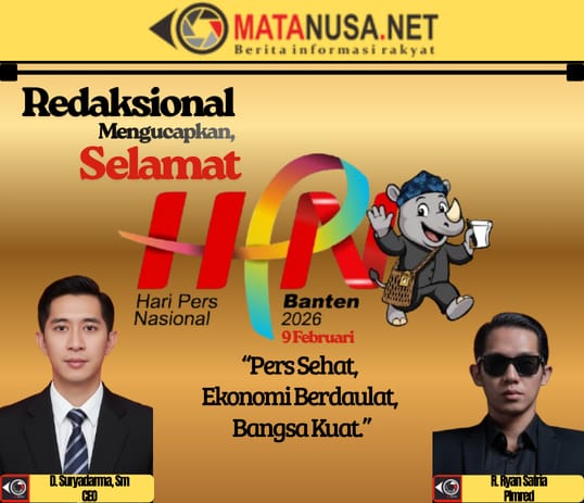 Sukabumi | Matanus.net – Redaksi Matanusa.net menyampaikan ucapan Selamat Hari Pers Nasional (HPN) Tahun 2026 yang diperingati pada 9 Februari 2026. Peringatan HPN tahun ini mengusung tema “Pers Sehat, Ekonomi Berdaulat, Bangsa Kuat” dan dilaksanakan secara nasional di Provinsi Banten.