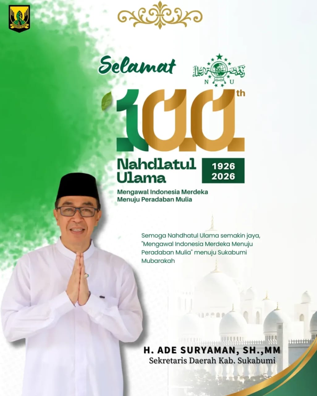 Sukabumi | Matanusa.net — Sekretariat Daerah Kabupaten Sukabumi menyampaikan ucapan Selamat Hari Lahir (Harlah) ke-100 Nahdlatul Ulama (NU) yang diperingati pada tahun 2026, menandai satu abad perjalanan organisasi keagamaan terbesar di Indonesia sejak berdiri pada 1926.