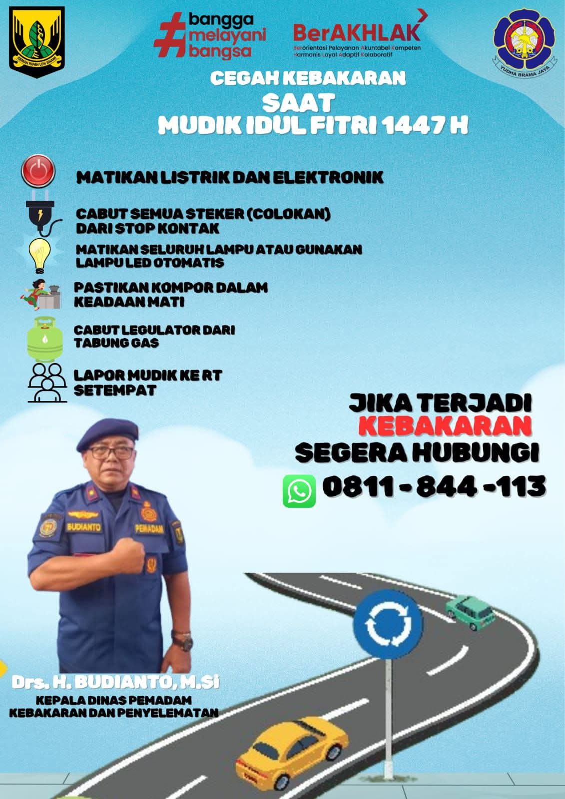 Kepala Dinas Pemadam Kebakaran dan Penyelamatan (DPKP) Kabupaten Sukabumi, Drs. H. Budianto, M.Si., pada Senin (16/3/2026), menyampaikan sejumlah langkah pencegahan yang perlu dilakukan masyarakat sebelum meninggalkan rumah saat mudik Idul Fitri 1447 Hijriah.