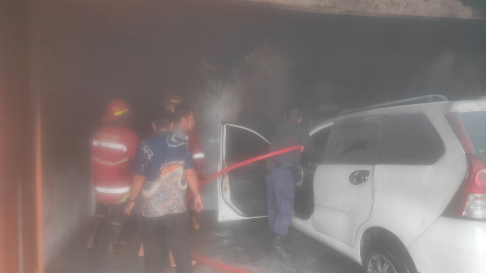 Peristiwa kebakaran terjadi sekitar pukul 13.00 WIB. Warga dikejutkan oleh suara ledakan keras yang bersumber dari sebuah garasi rumah yang juga difungsikan sebagai tempat parkir kendaraan. Ledakan tersebut diduga akibat korsleting kabel mesin dari satu unit mobil Toyota Avanza putih tahun 2014 bernomor polisi F 1255 TV milik Ade Mukti (45), yang biasa terparkir di dalam garasi.