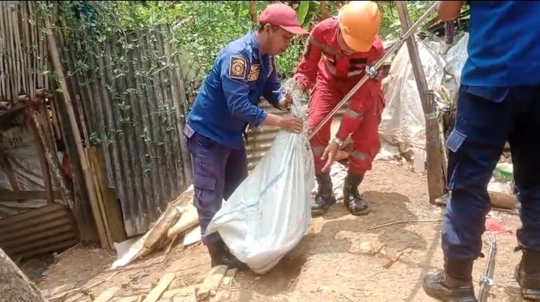 Tak butuh waktu lama, tim Damkar Posko III Cicurug langsung bergerak menuju lokasi. Dengan keterampilan dan peralatan yang dimiliki, petugas berhasil mengamankan ular jenis sanca (piton) dengan panjang sekitar 3 meter tanpa menimbulkan korban jiwa.