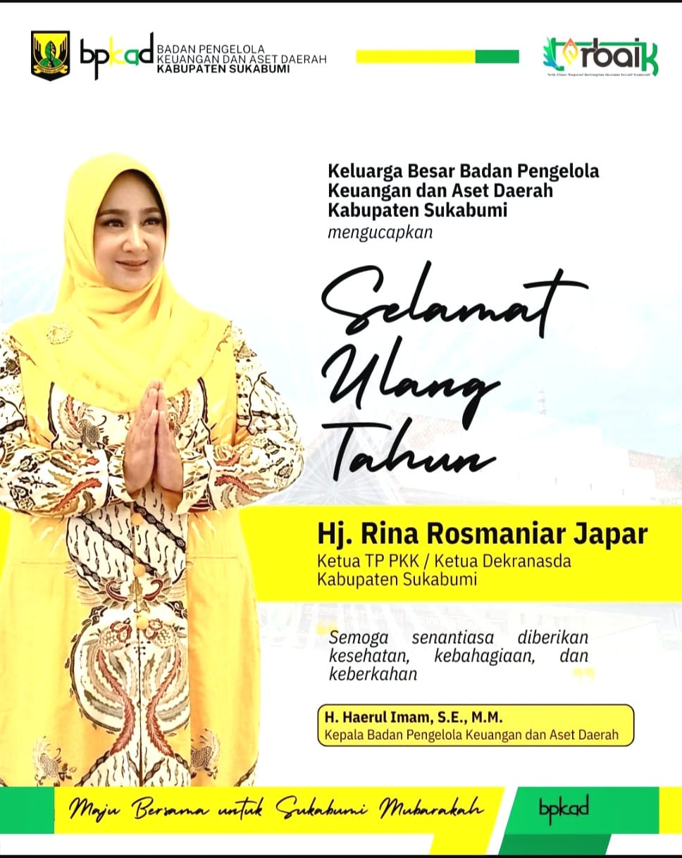 Bpkad Kabupaten Sukabumi Sampaikan Ucapan Ulang Tahun untuk Hj. Rina Rosmaniar Japar