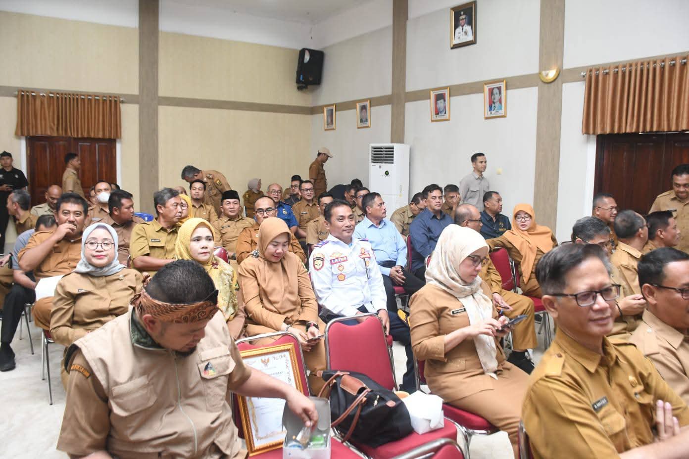 Rapat yang dipandu Sekretaris Daerah Ade Suryaman ini dihadiri Wakil Bupati Andreas, para kepala perangkat daerah, asisten daerah, staf ahli, kepala bagian, hingga para camat se-Kabupaten Sukabumi.