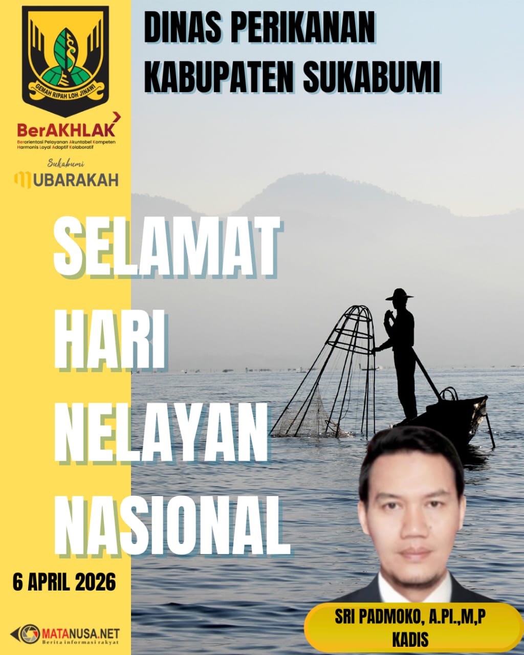 Sukabumi | Matanusa.net – Peringatan Hari Nelayan Nasional 6 April 2026 menjadi momen penting bagi Dinas Perikanan Kabupaten Sukabumi dalam menegaskan komitmennya terhadap penguatan sektor kelautan dan kesejahteraan nelayan.