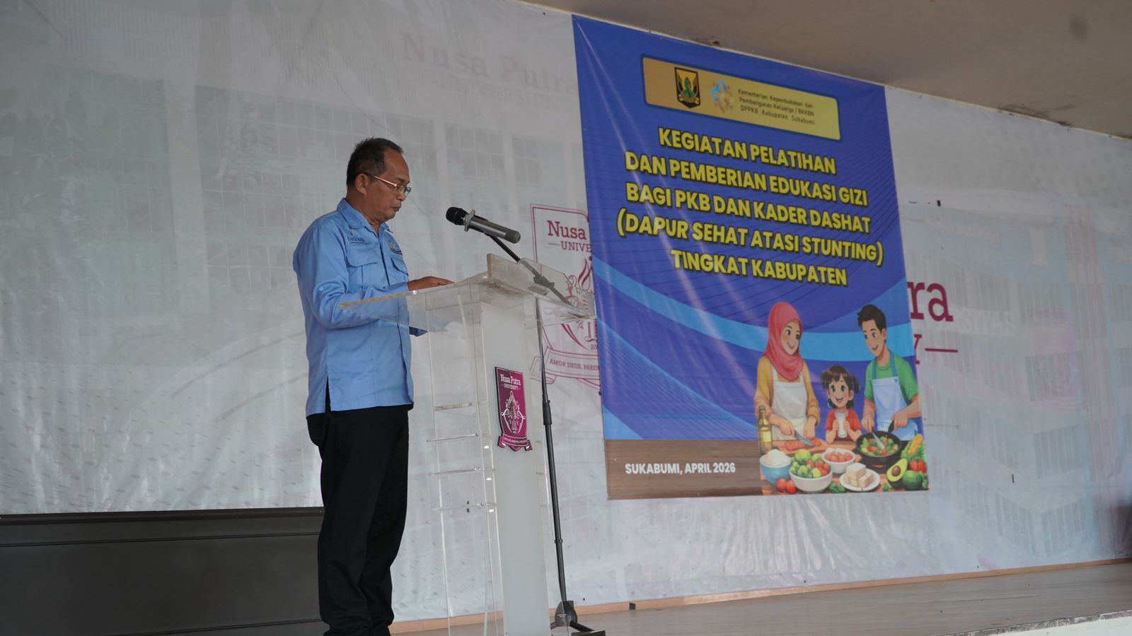 Sukabumi | Matanusa.net – Upaya percepatan penurunan stunting terus diperkuat oleh Dinas Pengendalian Penduduk dan Keluarga Berencana (DPPKB) Kabupaten Sukabumi melalui kegiatan Pelatihan dan Edukasi Gizi bagi Penyuluh Keluarga Berencana (PKB) dan Kader Dapur Sehat Atasi Stunting (DASHAT). Kegiatan tersebut sukses digelar, pada Kamis (30/4/2026), di Aula Kampus Universitas Nusa Putra, Kecamatan Cisaat, Kabupaten Sukabumi.